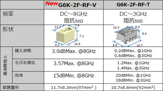 這款G6K-2F-RF-V是歐姆龍公司旗下G6K-2F-RF系列的新產品,是一款8GHz的高頻繼電器,適用于差分傳輸信號,能夠滿足ATE(半導體自動測試儀器)市場對繼電器更高頻率的要求。