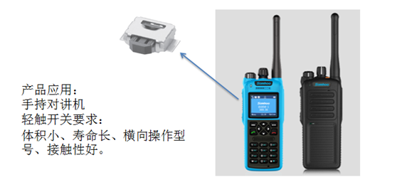 (三)手持對講機:建議使用橫向操作型B3U-3000P-B型號開關(guān),用于控制手持對講機的音量。
