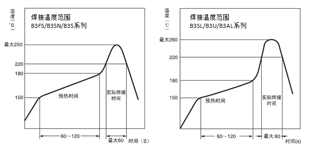 歐姆龍B3FSB3SNB3S等系列輕觸開關可使用回流焊進行焊接,以下是輕觸開關回流焊的一些注意事項。