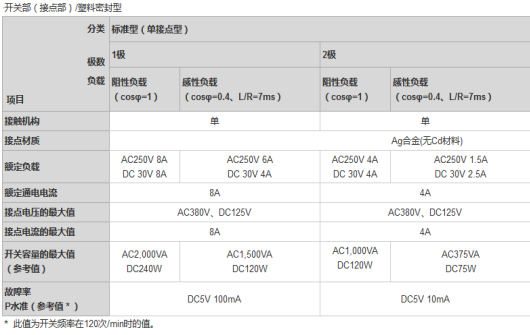 1極10A、2極5A的通用型功率繼電器