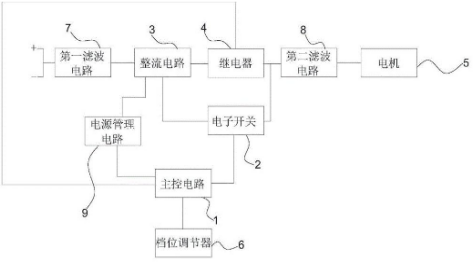 廚師機的驅動電路包括主控電路、電子開關、用于電連接市電的整流電路、與整流電路電連接的繼電器和與繼電器電連接的電機。