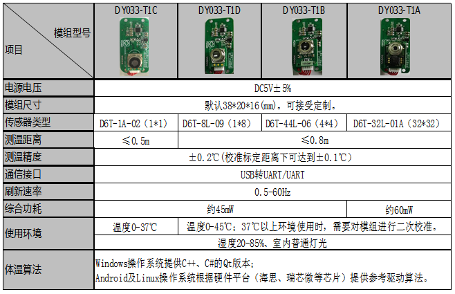 熱成像模組是基于歐姆龍紅外陣列高精度溫度傳感器以及先進軟件算法的非接觸式熱成像技術,可對視場范圍內任何物體進行紅外成像測溫,具備溫度數(shù)據(jù)實時輸出顯示,通過UART輸出方式 配合上位機軟件使用。歐姆龍熱成像模組廣泛應用于電子設備開發(fā)、PCB 測試、新材料、 供暖施工、非接觸溫度測量、非法侵入、生物探測等行業(yè)和領域。