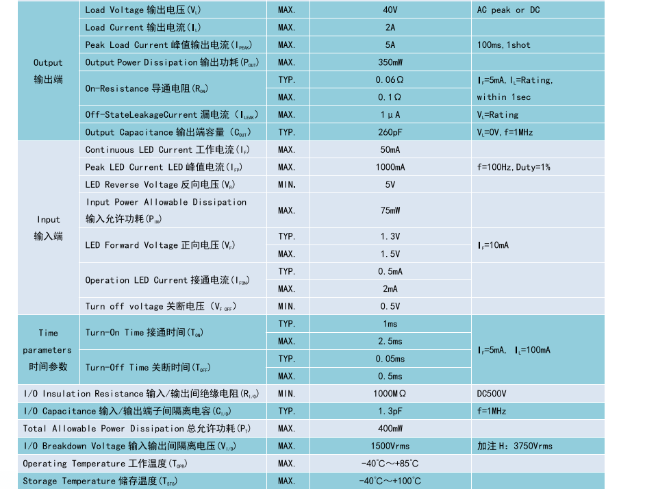 Relay 光MOS 繼電器 SOP4, Product Model產(chǎn)品型號(hào):BCY211S, Contact Form觸點(diǎn)形式:1a, Ambient Temperature 25C, 測試環(huán)境溫度 25℃C