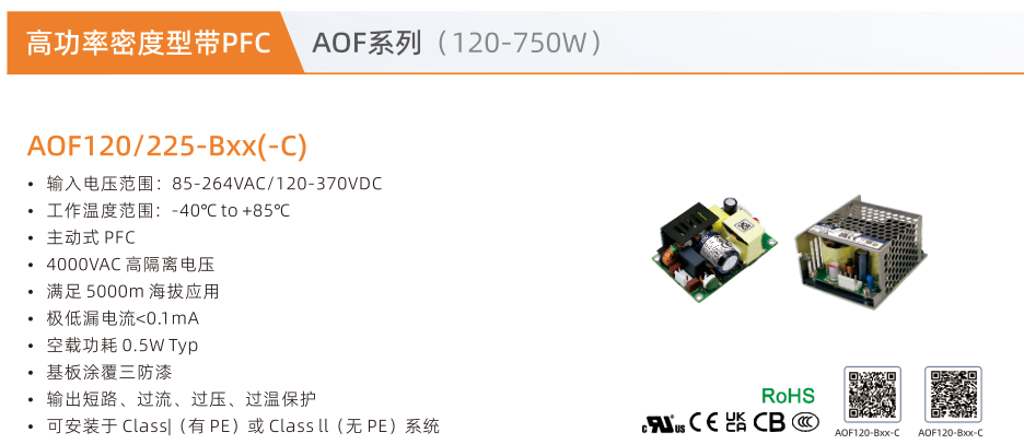 開關電源高功率密度型帶PFC AOF系列(120-750W)
