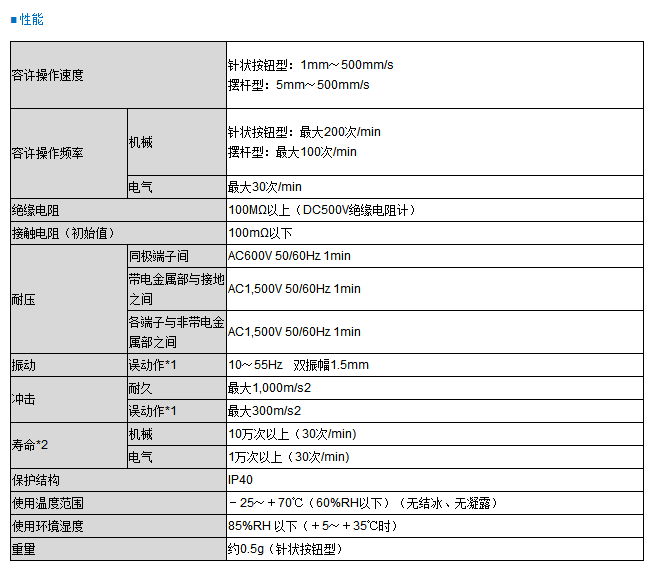 ? ??*1 在針狀按鈕型中為自由位置和動作極限位置的值,在擺桿型中為動作極限位置的值。接點的閉路或開路動作小于1ms。