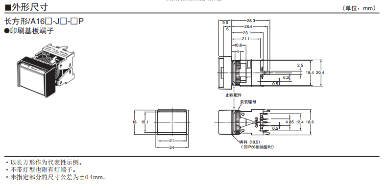 印刷基板端子型 操作桿部采用了耐高溫樹脂,可實現(xiàn)自動焊接。 面板和印刷基板的安裝方法簡單。 通過開閉操作桿,可輕松拆卸插座部。 可從印刷基板內側確認保持狀態(tài)。 分離式實現(xiàn)了進深28.3mm的短尺寸。可縮短面板進深。