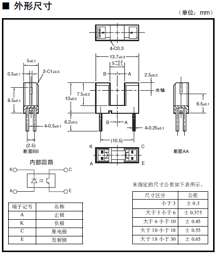 微型光電傳感器[透過型] 凹槽寬度為5mm的通用型 印刷線路板實裝型 高分辨率(狹片寬度0.5mm)