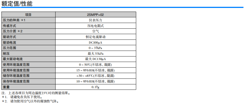 超小型、低功耗的MEMS表壓傳感器 長(zhǎng)6.1mm×寬4.7mm×高8.2mm的超小型。 比電容式壓力傳感器更優(yōu)異的電氣特性。 測(cè)量壓力范圍為0~37kPa。 偏置電壓:-2.5±4mV 量程電壓:31.0±3.1mV 0.2mW的低功耗。 受溫度影響小。 量程電壓:±1.0 %F.S. 偏置電壓:±3.0%F.S.